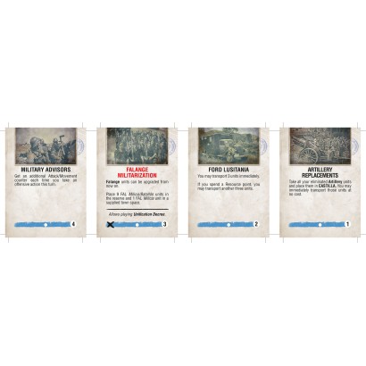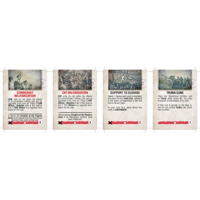 Each side includes counters representing the period’s military forces present on this front, such as African troops, dynamiters, Santander and Basque brigades, and the countless militias that fought with equal tenacity for one side or the other.