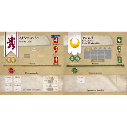 Almoravid se puede jugar en solitario y dispone de pantallas para esconder lo que los jugadores tienen de fuerzas, transporte, habilidades, etc.