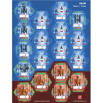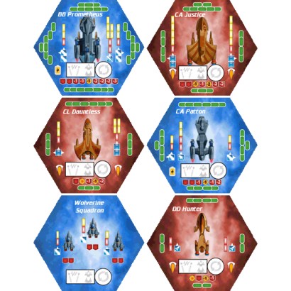 • 3 Sheets of large, laminated, hexagonal ship counters