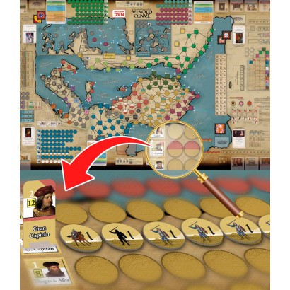 Registros individuales para cada líder, con casillas destinadas a las unidades que comandan, evitando así tener que mover grandes pilas sobre el mapa constantemente.